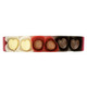 Milk chocolate (sugar, whole milk powder, cocoa butter, cocoa mass, soy lecithin, vanilla), White chocolate (sugar, cocoa butter, whole milk powder, soy lecithin,natural flavour), Dark chocolate (cocoa mass, sugar, cocoa butter, soy lecithin), Chocolate filling with hazelnut (sugar, hazelnuts, cocoa mass, cocoa butter, soy lecithin), Dried cranberries (with sugar, sunflower oil), Almonds. Allergens: Wheat, Barley, Almonds, Hazelnuts, Peanuts, Cashews, Pistachios