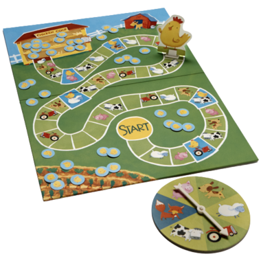 Includes: 1 game board, 1 mother hen with stand, 40 baby chick markers, 1 spinner and instructions.