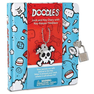 Hardcover diaries include 208 pages, 1 lock, 2 keys and a key-keeper necklace with skull charm.