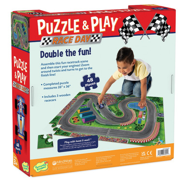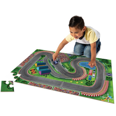 Ready, set, puzzle then play with this combo of vibrant puzzle and racetrack features that primes little speedsters for high octane fun.