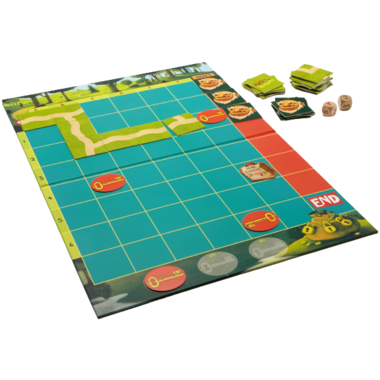 Players try to beat the ogre to the treasure by creating a path from START to END. Along the way they need to collect three keys to open the treasure. Players strategize, cooperate, and build the path together. If they do it before the ogre gets there, they all win!