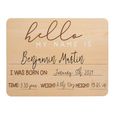 Be ready for baby's arrival with this adorable wooden hello my name is baby welcome sign and photo board! Snap a photo on the day you welcome your little one into the world with their personalized information including: name, birth date, birth time, weight, and height. This wooden welcome sign includes a black pen, so you will have everything you need to record your little one's arrival. Take a photo of baby girl or baby boy next to this baby arrival sign in the hospital and share your special moment with friends and family on social media. After you bring your little one home this wooden sign makes wonderful gender-neutral nursery decor! This classic sign will fit perfectly into any nursery theme! From gender neutral nurseries, to floral, animal or car themed nurseries this wooden keepsake sign is a perfect addition. This baby welcome sign also makes the perfect baby shower registry addition or gift for any new parent or expecting parent! At Pearhead, we aim to create genuine, quality products to celebrate your special moments in life. We are a family of designers, marketers, and trendsetters bringing products to life that will bring a smile to your face. From concept and design to production and customer service, the Pearhead team works together seamlessly every step of the way. Whether your baby is celebrating their first year of life, you are announcing your pregnancy, or your pup is celebrating his first holiday season, Pearhead is here to share your moments in style.