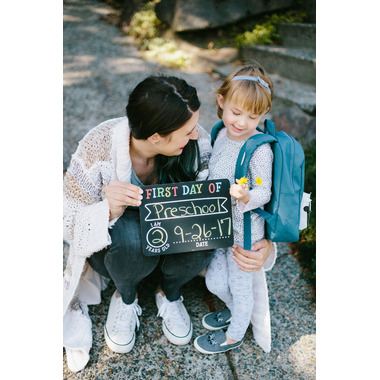 Fill in your little pearhead’s grade, age, and the date. Pearhead’s first & last day chalk signs are a fun way to show how much your little one has grown over the school year. Snap a picture on the first day of school and last day of school and see how they've grown! Use the hashtag #mylittlepearhead for a chance to be featured on Pearhead’s social pages.