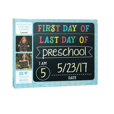 - Create photo memories of the first and last day of each school year with Pearhead's first & last day chalk signs
