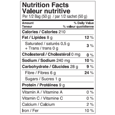 Ingredients: Organic Whole Green Pea Flour, Organic Brown Rice Flour, Organic Sunflower Oil and/or Organic Safflower Oil, Organic Dehydrated Vegetables (organic Tomato, organic red bell pepper, organic onion and organic garlic), Salt, Organic Rice Concentrate, Organic Dillweed, Organic Parsley, and Natural Flavour.