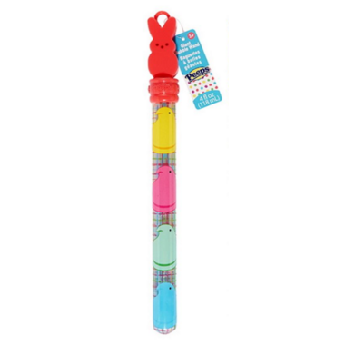 Wave the Peeps Giant Bubble Wand to make tons of bubbles! Three wand styles. Includes 4 fl. oz. of bubbles. Blow lots of HUGE bubbles with your favourite Peeps bunnies! Just dip the large wand into the bubble stick, wave the wand in the air and watch as large bubbles fly into the sky!