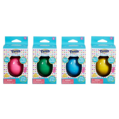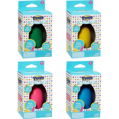 Hatch and grow your own PEEPS! Add water - then watch the egg hatch to reveal a mini PEEPS Bunny or Chick inside! Replace the water and in 48 hrs your PEEP will have tripled in size! Perfect basket stuffer and candy alternative.