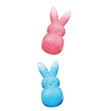 Assorted chick and bunny shaped marshmallow gummies. These peeps are also artificially flavoured!