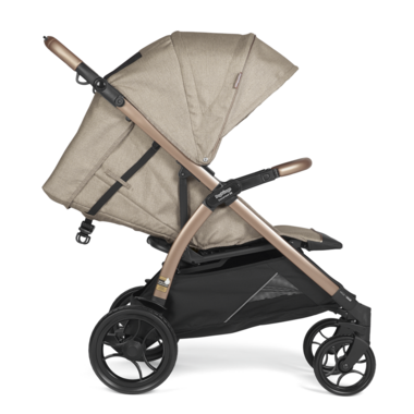 The streamlined design of the Booklet allows it to be maneuvered with ease through heavy sidewalk traffic, narrow aisles and crowded elevators. The hood has an extendable UPF 50+ protecting visor, which helps shield little ones from the suns UV rays. Wheels with ball bearings and suspension let the stroller be pushed effortlessly, while easily overcoming bumps and uneven surfaces. The frame is composed of lacquered aluminum, which is very solid and sturdy, yet lightweight enough to be easily maneuvered and carried.