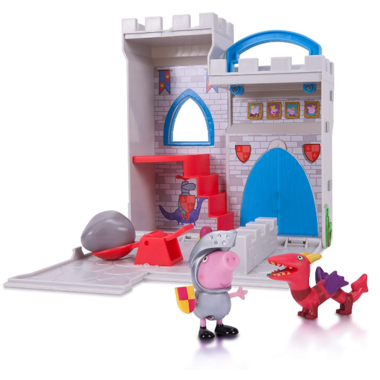 There’s a dragon on the loose! The brave Sir George is ready for action with his Castle Fort! Open the fort to reveal a catapult. The Castle Fort includes a dragon and exclusive George in his brave knight attire. The fort closes to become a carrying case complete with handle. Built in scale with your favorite Peppa Pig playsets, this Little Castle Fort will help make your collection complete.