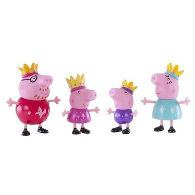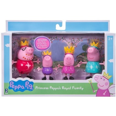 Have a royal time with Princess Peppa and her Royal Family. Each dressed in sparkling crowns and royal attire. Take home Princess Peppa, the small Prince George, Queen Mommy Pig and King Daddy Pig each scaled perfectly to play with your favorite Princess Peppa Playsets.