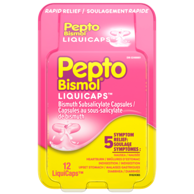 Pepto Bismol is formulated to coat your upset stomach, calm heartburn & nausea and relieve indigestion & diarrhea. Pepto Bismol LiquiCaps provide rapid relief that’s equally as effective as Pepto Bismol liquid. These convenient LiquiCaps allow you to take Pepto Bismol on-the-go so you can take it anywhere — at work, home, or travel worry-free. Take Pepto Bismol at the first sign so you’re back to your normal fast.