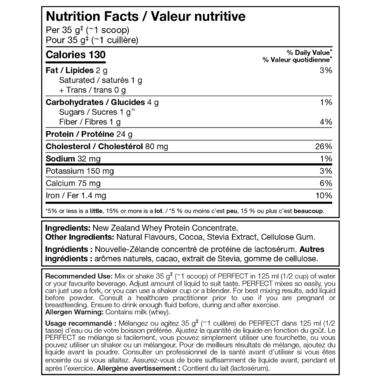 A pure clean protein you can feel good about, PERFECT Whey Protein contains just that – pure whey protein sourced from 100% New Zealand dairy. It’s sourced from grass-fed, pasture-raised dairy and you get 24g of the most delicious protein your body demands without having to settle for artificial sweeteners or flavours.