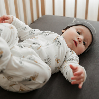 These one-piece pajamas made from bamboo viscose will ensure baby's comfort no matter what the temperature. Thanks to the very convenient zipper that will make diaper changes easier and its fold-over hands part (for sizes 0-9 months), no need to use anti-scratch mitts, this sleeper made from bamboo fiber also contain natural antibacterial elements to protect your little one. An essential in the baby wardrobe.