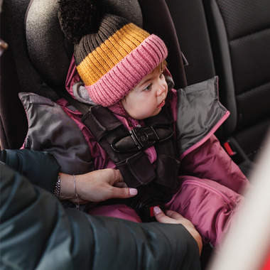 • Filling-free chest portion for a closer adjustment of car seat straps.