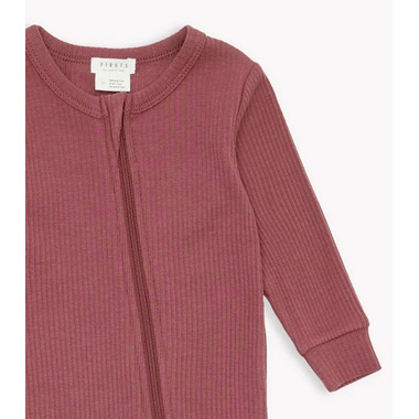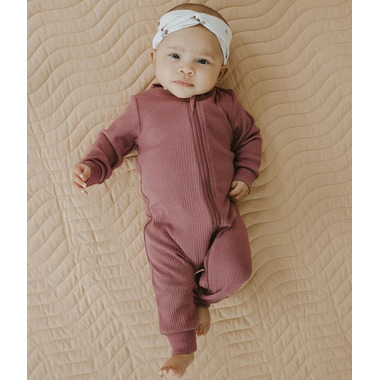 This straight cut sleeper with elasticated cuffs and ankles is made from our softest modal rib blend in a warm dark pink hue. The simple one piece is perfect for a day crawling indoors or layering under a hat and cardigan for a chilly Fall stroll. The full-length zipper down the front of the piece makes it easy to put on and take off, while also making diaper changes on the go that little bit quicker.