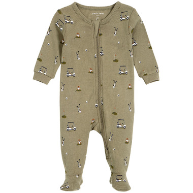 This adorable sleeper is the perfect piece for hanging out with dad on Father’s Day. Featuring a playful golf print, the sleeper matches with PJs from the same range for older siblings and the big man himself. Made from organically grown cotton rib, the sleeper is cozy and snug while still being light and breathable for the Summer. With integrated feet and elasticated cuffs, the sleepsuit has a comfortable fit that leaves your little one relaxed and cool throughout the day. The two-way zipper helps with over the head dressing or quick diaper changing.