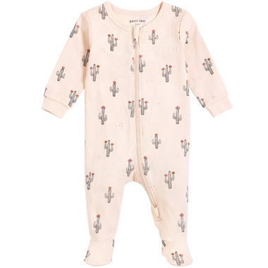 This saguaro cactus sleeper is anything but prickly. Made from Petit Lem's softest organically grown cotton, the piece is ultra-light and delicate on baby’s skin. With integrated feet and elasticated cuffs, the one piece will keep them the perfect temperature while they doze off in the stroller. Designed with mom, dad and baby in mind, the two-way zipper means diapers can be removed without having to take off the whole piece on a chilly day.