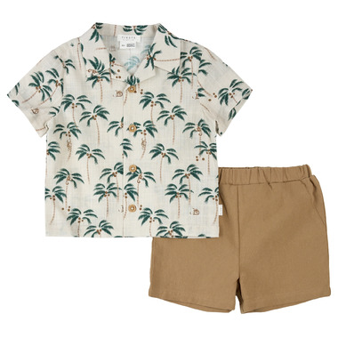 petit lem Camp Shirt Set Palm Trees Crosshatch Beige