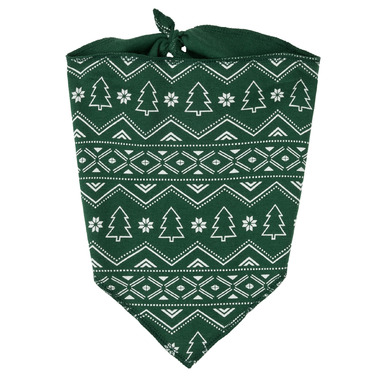petit lem Dog Bandana Fair Isle Holiday Trees Print on Dark Green