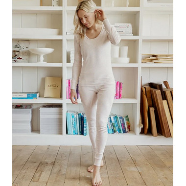 These timeless, pink striped PJs are comfortable, gentle and ideal for the transitional months. With long sleeves and long pants, the modal rib two-piece set offers a little extra warmth on those chilly mornings before the school run. With a flattering rounded neckline, and a figure-hugging fit, the set is easy to wear while keeping busy around the house. Made from a soft modal rib, they’re the perfect choice kicking back for snuggles with the kids – who have their own matching pieces available in the same range.