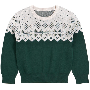 This classic knitted sweater uses a Fair Isle print that’s perfect for the festive season – and right through the Winter. Made from a cozy organic cotton knit, the sweater is warm and snug for chilly days. Matching tops are available for mom and dad, so the whole family can match.