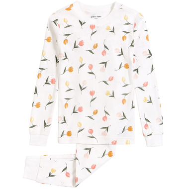 This tulip PJ set matches the sleepwear available for moms and younger siblings. Made from organically grown cotton rib, the set is perfect for the transitional period and will keep them at the perfect temperature. The long-sleeved top has elasticated cuffs while the pants have elasticated ankles for a snug fit.
