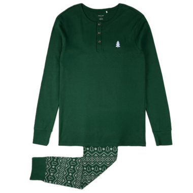 petit lem Men's PJ Set Fair Isle Holiday Trees Print on Dark Green