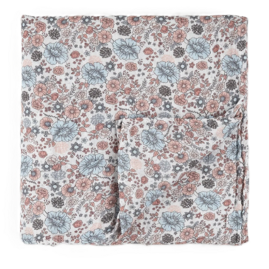 petit lem Muslin Swaddle Vintage Flowers Print on Off White