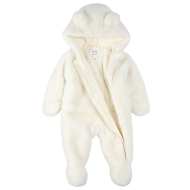 Soft as a cloud, this plush playsuit feels like a constant cuddle and is there anything cuter than a bear-eared hood? Lined with organically grown cotton jersey, the playsuit is perfect for layering under snowsuits for extra cold days without making baby feel too hot or uncomfortable. The reversible mitts mean they’re free to touch and feel Winter’s wonders but can stay warm and cozy in between. A full-length zipper makes the piece simple to put on and off. It’s perfect for bundling up your little one for a stroll with the family.