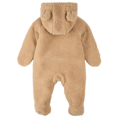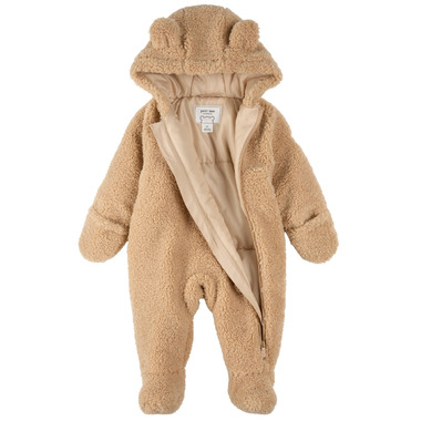 Wrap your little one in warmth and snuggles with this teddy bear-style sherpa playsuit. Lined with soft organically grown cotton jersey, this cozy playsuit is perfect for the colder months and keeping them cozy while they snooze in the stroller. Reversible mitts protect their tiny hands with the option to leave them open to play with snow for the first time. Bear ears on the hood adds extra cuteness to the piece, making it an irresistible gift for new parents.
