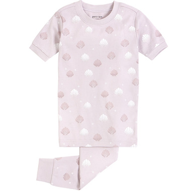Mermaid lovers and shell hunters unite! This two-piece PJ set will be the new favorite while heading off to bed to dream of under the sea adventures. With short sleeves, and long pants, the set is the perfect combination of cool and cozy. Made from organically grown cotton rib, the pajamas are soft-as-a-cloud. Matching sleepers are available for younger siblings for a total shellabration before bed.