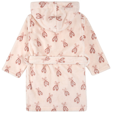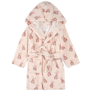 Pretty in pink, this cozy plush robe is the perfect way to wrap her up after a post-rehearsal bath. Featuring a sweet Ballet Slippers print, the robe is perfect for little dancers and is made from ultra-soft coral plush. With a waist tie and snuggly hood, she’ll feel comfy and rested before bed.
