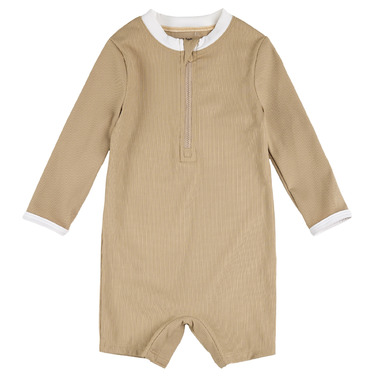 petit lem Ribbed Long Sleeve Swim Romper Light Taupe Sand