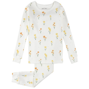 petit lem Ribbed PJ Set Daffodil Print on Off White