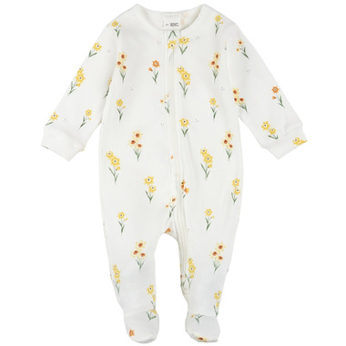 petit lem Ribbed Sleeper Daffodils Print on Off White