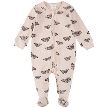 petit lem petit lem Ribbed Sleeper Monarch Print on Cherry Blossom Light Pink