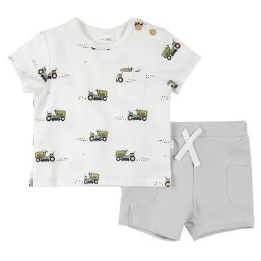 petit lem Shorts Set Lawnmower Print on Off White