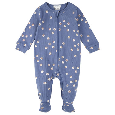 Cuddle up for a night of rest after a long day at the park with the family in this sweet Baseball print sleeper. With integrated feet, the organically grown cotton rib sleepsuit keeps them cozy and snug. Mom and dad can score a home run in the field of diaper changes with the full-length, two-way zip down the front.