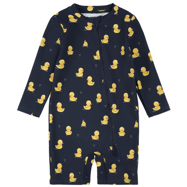 Petit Lem Swim Long Sleeve Swim Romper Rubber Ducks on Navy