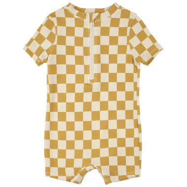Petit Lem Swim Romper Checkerboard Orange Yellow