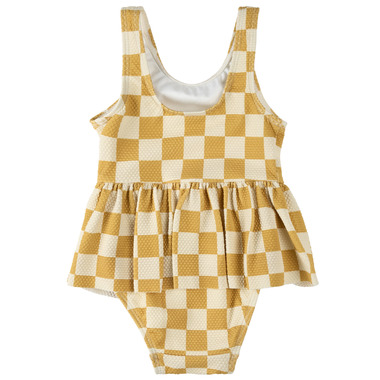 Petit Lem Swim Skirted Swimsuit Checkerboard Orange Yellow