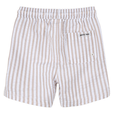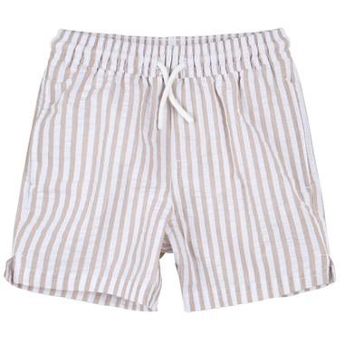 With a timeless, sandy beach feel, these taupe seersucker swim trunks are effortlessly cool and match swimwear available for the whole family. Elastic in the waistband makes them easy to pull up and down for dressing and drying off, while the drawstring tie provides a secure fit for all day play.