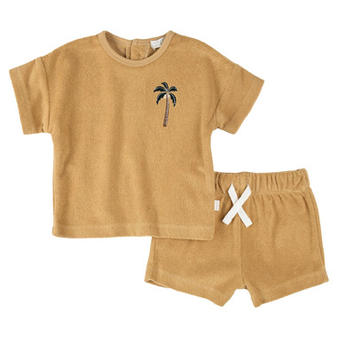 petit lem Terry Short Set Sahara Sun Print on Yellow Gold
