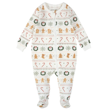 petit lem Thermal Sleeper Holiday Treats Fair Isle Print on Off White