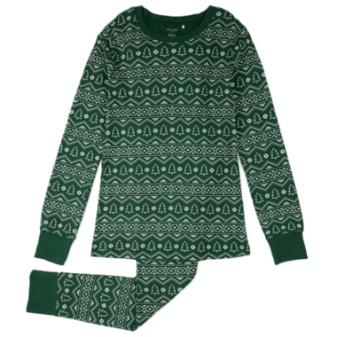 petit lem Women's PJ Set Fair Isle Holiday Trees Print on Dark Green