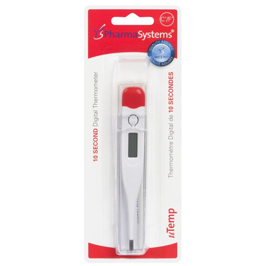 Pharmasystems Digital Thermometer is fast and accurate - 10 seconds read time after thermometer reaches a stable temperature reading.