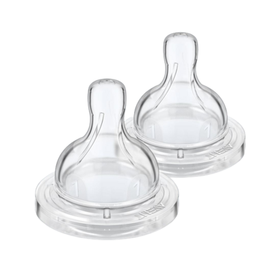 The Philips AVENT Anti-colic nipple flow 1 is Philips AVENT slowest flow nipple, which is great for newborns and breastfeed babies learning to drink from a bottle. The anti-colic valve integrated in the nipple is designed to keep air away from your baby's tummy to reduce colic and discomfort. As your baby feeds, the valve flexes to allow air into the bottle to prevent vacuum build up and vents it towards the back of the bottle. It keeps air away from baby’s tummy to help reduce colic and discomfort. The nipple shape allows for a secure latch and the ribbed design helps prevents collapse for uninterrupted, comfortable feeding. The anti-colic nipple is made of flavorless, odorless, soft, silicone that resists discoloring and stickiness, a BPA free material. Philips AVENT Anti-colic nipples are available in different flow rates, to keep up with your baby’s growth. It's recommended replace nipples every 3 months for hygiene reasons. Use Philips AVENT Anti-colic bottles only with Philips AVENT Anti-colic nipples.