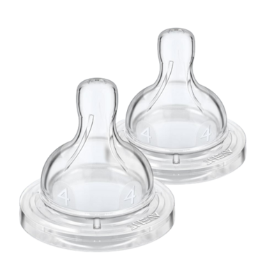 The Philips AVENT Anti-colic nipple flow 4 is Philips AVENT fast flow nipple, which is great for growing babies drinking from a bottle. The anti-colic valve integrated in the nipple is designed to keep air away from your baby's tummy to reduce colic and discomfort. As your baby feeds, the valve flexes to allow air into the bottle to prevent vacuum build up and vents it towards the back of the bottle. It keeps air away from baby’s tummy to help reduce colic and discomfort. The nipple shape allows for a secure latch and the ribbed design helps prevents collapse for uninterrupted, comfortable feeding. The anti-colic nipple is made of flavorless, odorless, soft, silicone that resists discoloring and stickiness, a BPA free material. Philips AVENT Anti-colic nipples are available in different flow rates, to keep up with your baby’s growth. It's recommended to replace nipples every 3 months for hygiene reasons. Use Philips AVENT Anti-colic bottles only with Philips AVENT Anti-colic nipples.