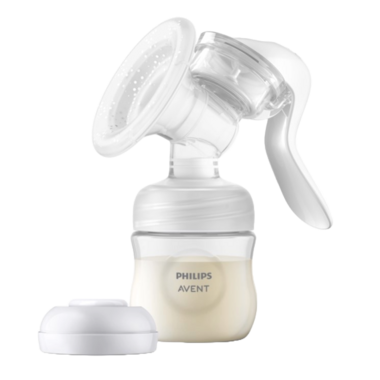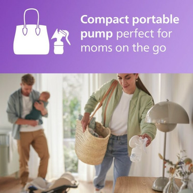 Philips Avent manual pump is both gentle and portable. The small compact pump is easy to take with you wherever you might need to pump, both at home or away. This pumps Natural Motion technology is inspired by baby's suckling and massage during breastfeeding for quick milk flow during pumping. In their manual pump the Natural Motion technology gently combines suction and nipple stimulation for quick milk flow. The soft silicone cushion adapts to fit both the size and shape of the breast comfortably. It fits nipple sizes up to 1.18 inches. The angle of the pump allows for an upright pumping position, thanks to a no lean forward design. The pump has only a few parts and therefore is easy to set-up, use, and clean. You can pump directly into the 4oz Natural bottle base and then attach the Natural response nipple to feed immediately. If not feeding right away, you can use the sealing disc and 4oz bottle to store the milk. Nipples are available, Flows 1-5. Includes a flange cap to keep the pump clean in transit. Made of BPA free materials.